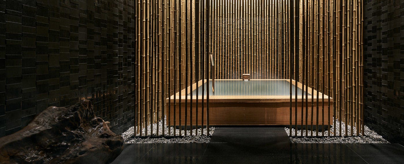 館内には「木之湯」と「石之湯」という趣の異なる二つの浴室があり、前者は檜やヒバの香りに包まれ、後者は重厚な御影石の佇まいが印象的。