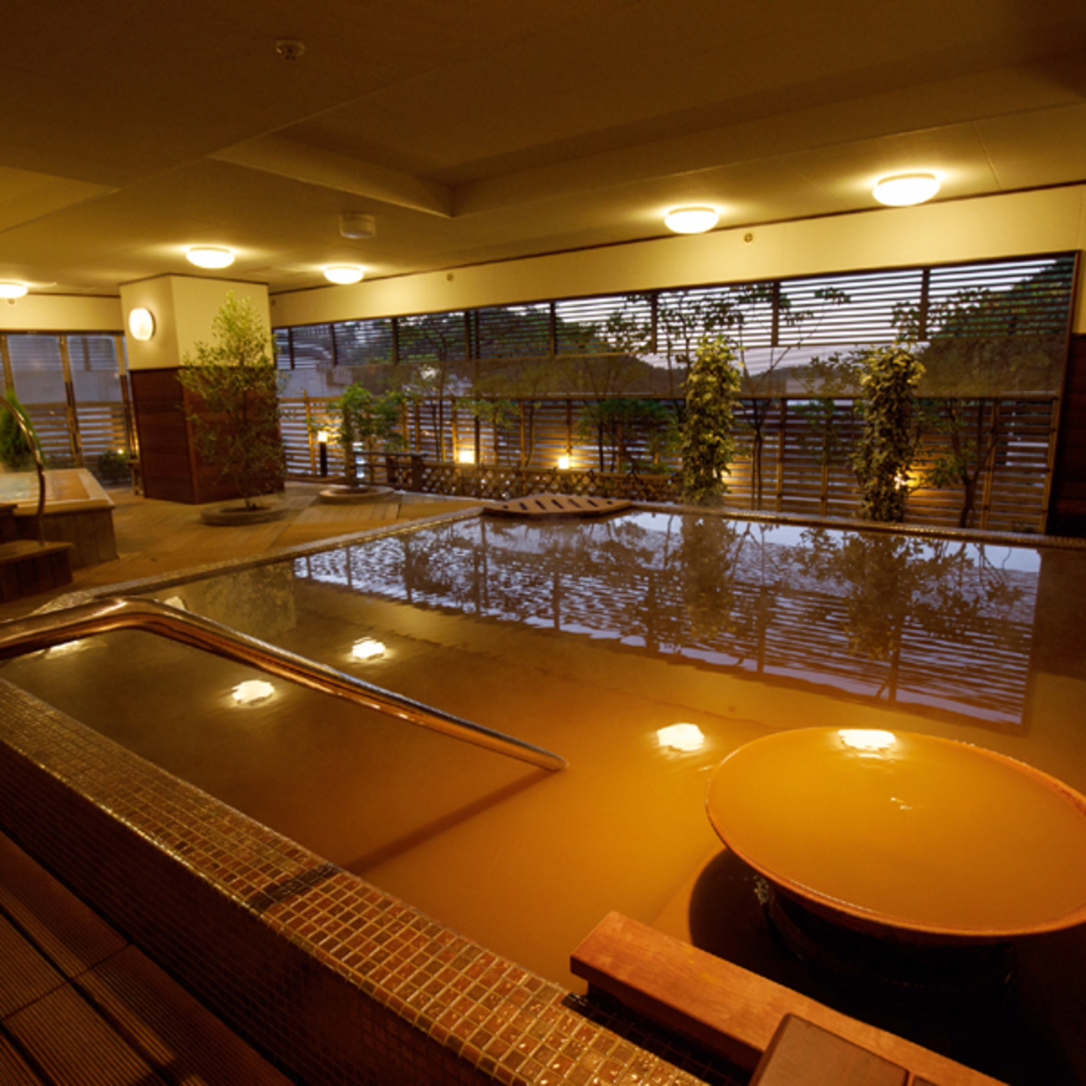腰痛への効果:保温効果に優れた「塩化物泉」と、肌を滑らかにする「炭酸水素塩泉」の複合泉。体の芯から温め血行を促進し、入浴後も湯冷めしにくい「熱の湯」として、慢性的な腰の痛みをじっくりと和らげます。