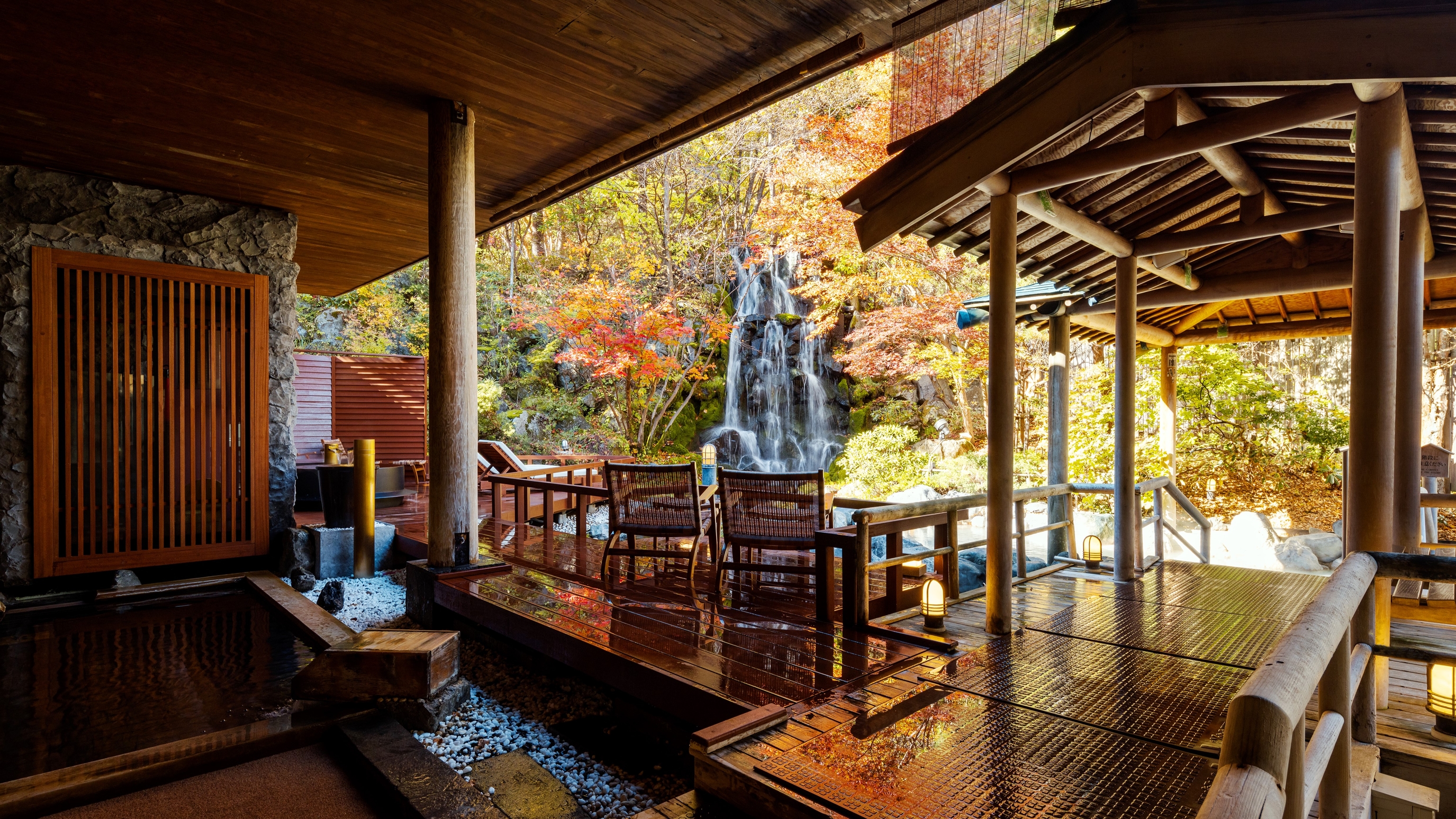 出典:楽天トラベル|登別ならではの乳白色の硫黄泉をはじめ、希少な泉質を滝の流れる美しい庭園露天風呂で。本物の温泉力が日々の疲れをときほぐし、心身を芯から癒やしてくれます。最高の温泉体験を!